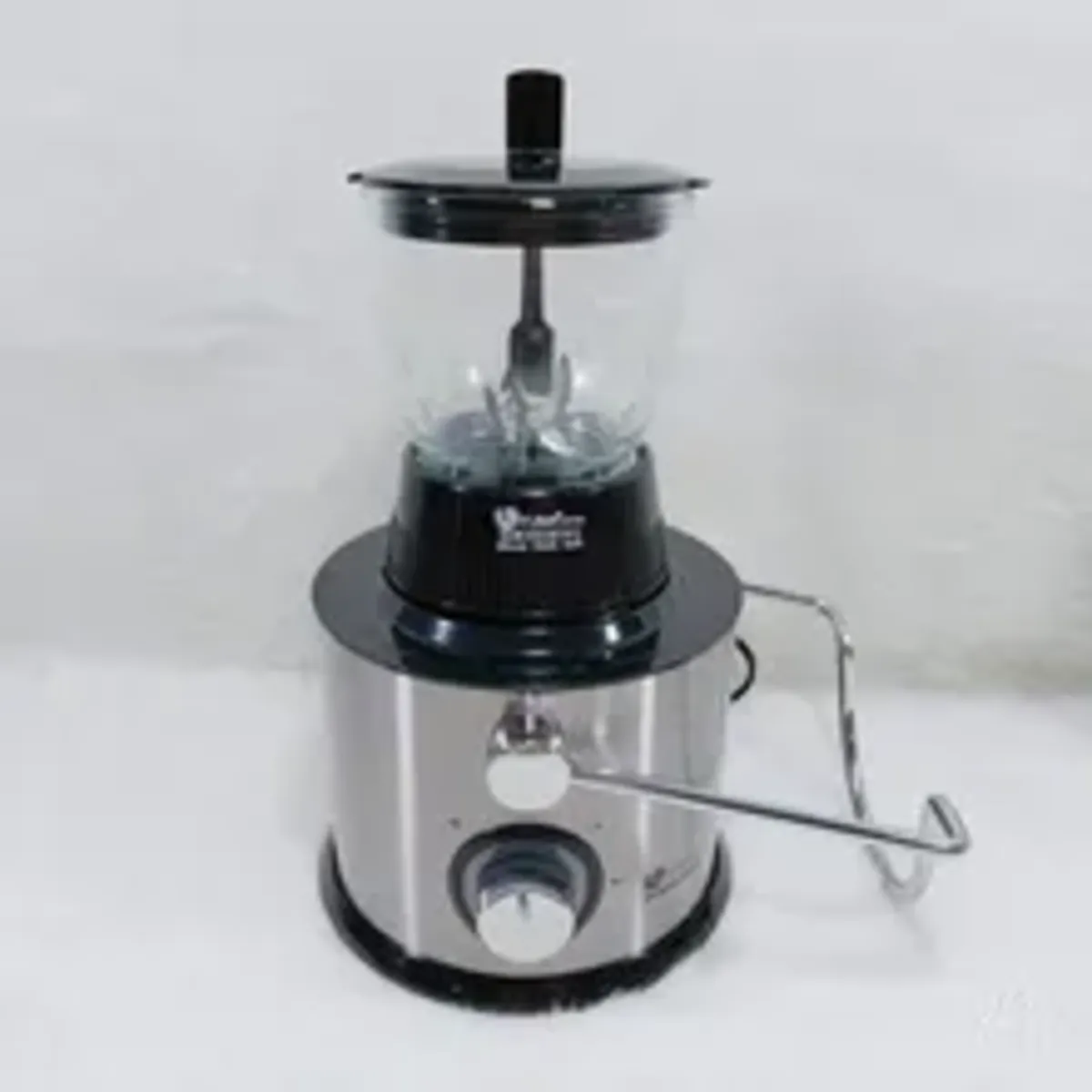 آبمیوه گیر FU-1979 یک محصول 4 کاره بوده که توسط شرکت ژاپنی فوما FUMA عرضه شده است. این محصول 4 قطعه از قابلیتهای ابمیوه گیری، خرد کردن، اسیاب کردن و مخلوط کردن برخوردار است. علاوه بر بخش اصلی ابمیوه گیر قطعات مخلوط کن، خرد کن و اسیاب کن همراه این محصول عرضه شده است. همچنین می توان توری(فیلتر) استیل برای جذب تفاله ها و ضایعات را نام برد. این توری شستشوی راحتی دارد. این محصول مواد را با هم میکس می کند، آب انواع خوراکی ها را می گیرد، همچنین مجهز به آسیاب نیمه حرفه ایی بوده که مواد را خرد می کند و امکان تهیه انواع ادویه ها را فراهم نموده است. توان این دستگاه 1200 وات بوده و سرعت آن در دو سطح قابل تنظیم است. همچنین از عملکرد پالس بهره می برد. شما می توانید بسته به نوع ماده خوراکی سرعت مناسب را انتخاب کنید. بدنه ان ترکیبی از پلاستیک و استیل ضد زنگ باداوم است. دهانه ورودی هم از استیل بوده و با قطر 75 میلیمتر می توان میوه ها را بدون نیاز به خرد کردن زیاد و در ابعاد بزرگ وارد دستگاه کرد. به این شکل هم دردسر خرد کردن کمتر می شود و هم سرعت عمل شما هنگام کار بالا می رود. مخزن تفاله بزرگ این محصول امکان گرفتن حجم بالایی از اب میوه را به کاربر می دهد بدون انکه نیازی به تخلیه مکرر باشد. این دستگاه کم صدا بوده و از پایه های ضد لغزش بهره می برد. به لطف این پایه ها می توان دستگاه را بر روی سطوح مختلف قرار داد و هنگام فعالیت عملکردی ارام و بدون لرزش از این محصول شاهد بود. این دستگاه از ایمنی بالایی برخوردار بوده و به سوئیچ ایمنی دو گانه مجهز شده است تا بالاترین سطح ایمنی را ارائه دهد. بنابراین تنها در صورتی که همه قطعات به شکلی درست در جای خود قرار گرفته باشند دستگاه فعال می شود. همچنین به سیستم محافظ موتور مجهز شده است. در صورت وارد شدن فشار بیش از حد به موتور و گرمای زیاد عملکرد دستگاه را متوقف می نماید. این امر تاثیر زیادی بر افزایش طول عمر مفید دستگاه دارد. با استفاده از این محصول می توانید انواع آبمیوه ها را گرفته و اسموتی های خوشمزه و مختلف بسازید و یا ادویه های خوش عطر تهیه کنید. تیغه های استیل ضد زنگ بسیار محکم به راحتی اب انواع میوه ها و سبزیجات را می گیرد. در پایان کار می توانید قطعات را درون ماشین ظرفشویی انداخته تا بدون دردسر تمیز شوند.
