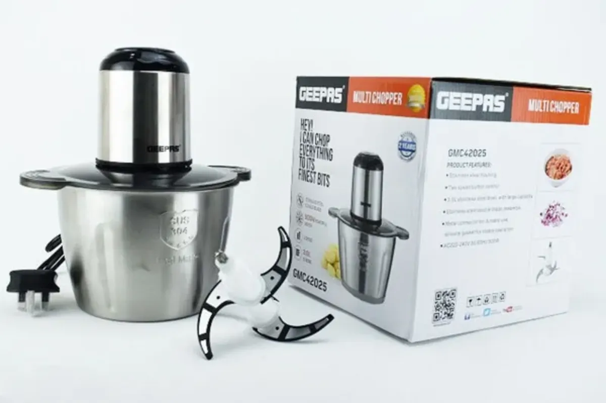 خردکن 3 لیتر استیل جیپاس مدل 42025: ✅مشخصات محصول: ☑️توان : AC220-240V 50/60Hz 500W ☑️ظرفیت کاسه : 3.0 لیتری ☑️جنس کاسه : استیل ضد زنگ ☑️کنترل دو دکمه سرعت ☑️ دو تیغه از جنس استیل ☑️کانکتور فلزی برای استفاده بادوام ☑️واشر سیلیکونی برای عملکرد پایدار