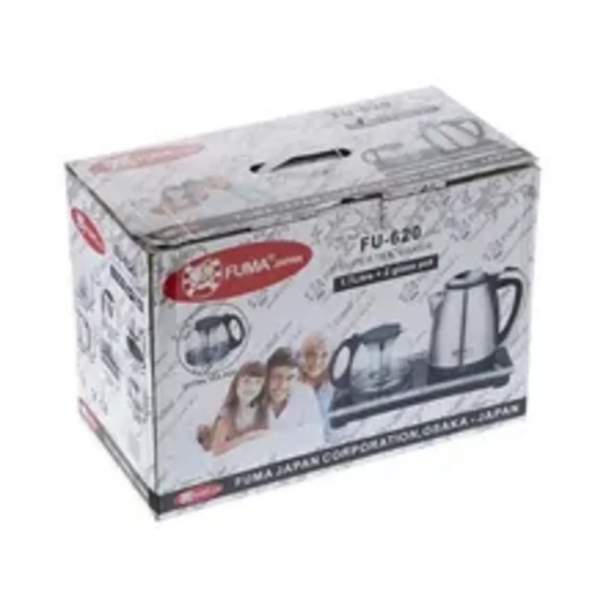 چایساز مدل FU-620 محصولی خوشساخت و کارآمد از شرکت فوما «Fuma» است که برای دمکردن و آمادهسازی سریع چای طراحی شده است. این محصول از یک کتری و یک قوری تشکیل شده است که روی یک صفحه گرم کننده قرار گرفته اند. کتری این مجموعه از جنس استیل است که زیبایی خاصی دارد و با وجود دستگیرههای عایق گرما، بهراحتی قابلحمل است. قوری این مدل از جنس شیشه دارای صافی توری فلزی است که مانع ورود تفاله چای به استکان یا لیوان میشود. بالا بودن توان و قدرت کتری برقی این چایساز میتواند ظرفیت کامل آب را ظرف چند دقیقه به جوش آورد. گردش 360 درجه بدون سیم کتری باعث میشود بتوانید آن را در حالت موردنظر خود قرار داده و بهراحتی از دستگاه استفاده کنید. گفتنی است سیم این محصول برابر با 80 سانتی متر است که قابلیت جدا شدن دارد.