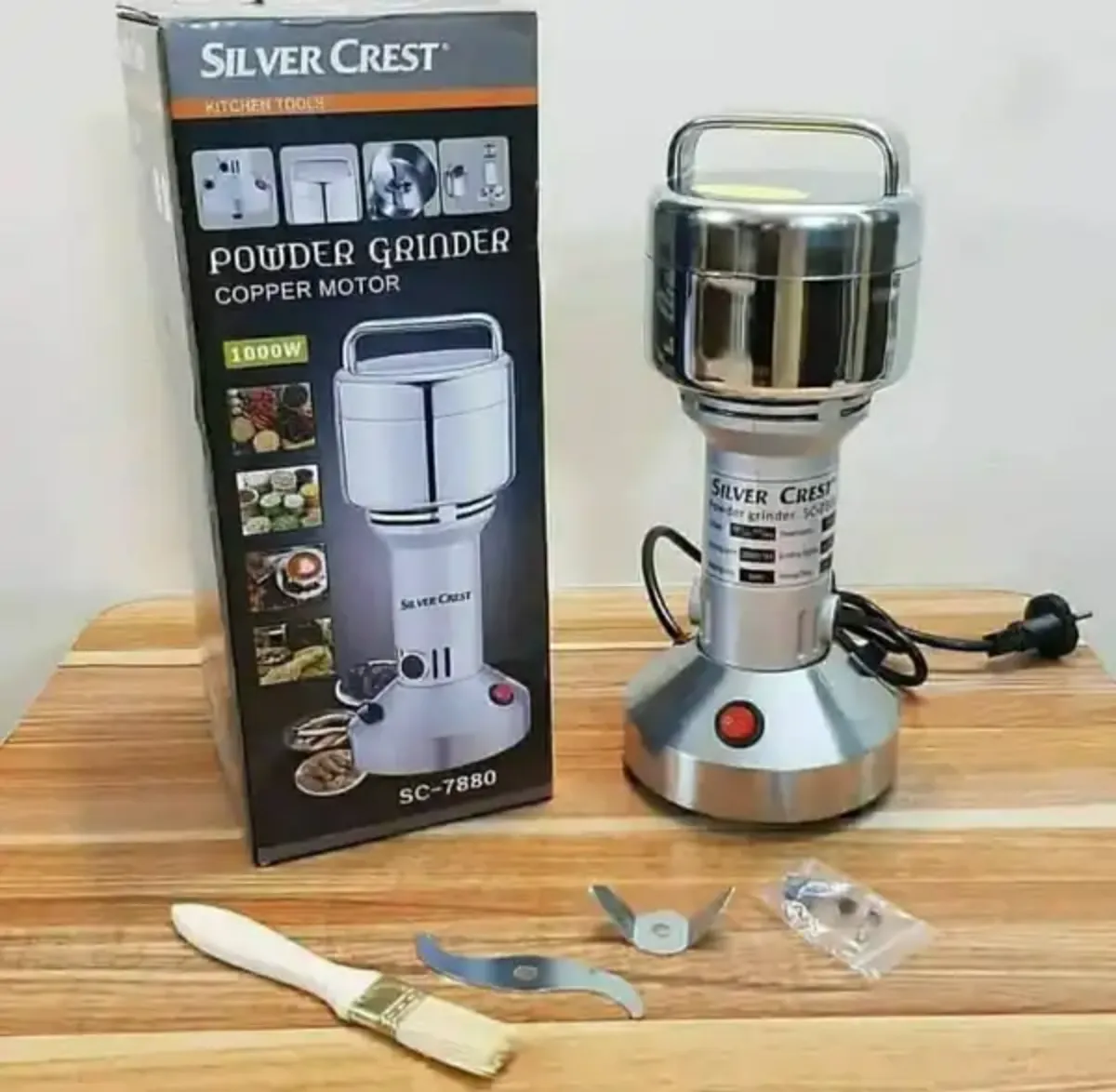 آسیاب صنعتی سیلور کرست مدل SC-7880 : این آسیاب صنعتی از جمله قدرتمندترین آسیاب های موجود در بازار می باشد که دارای توان مصرفی 1000 وات است. ظرفیت این آسیاب 150 گرم بوده و با استفاده از آن می توان اقدام به پودر کردن مواد غذایی مختلف نمود. قدرت این دستگاه به قدری بالاست که با استفاده از آن می توان حتی سنگ را نیز پودر کرد.