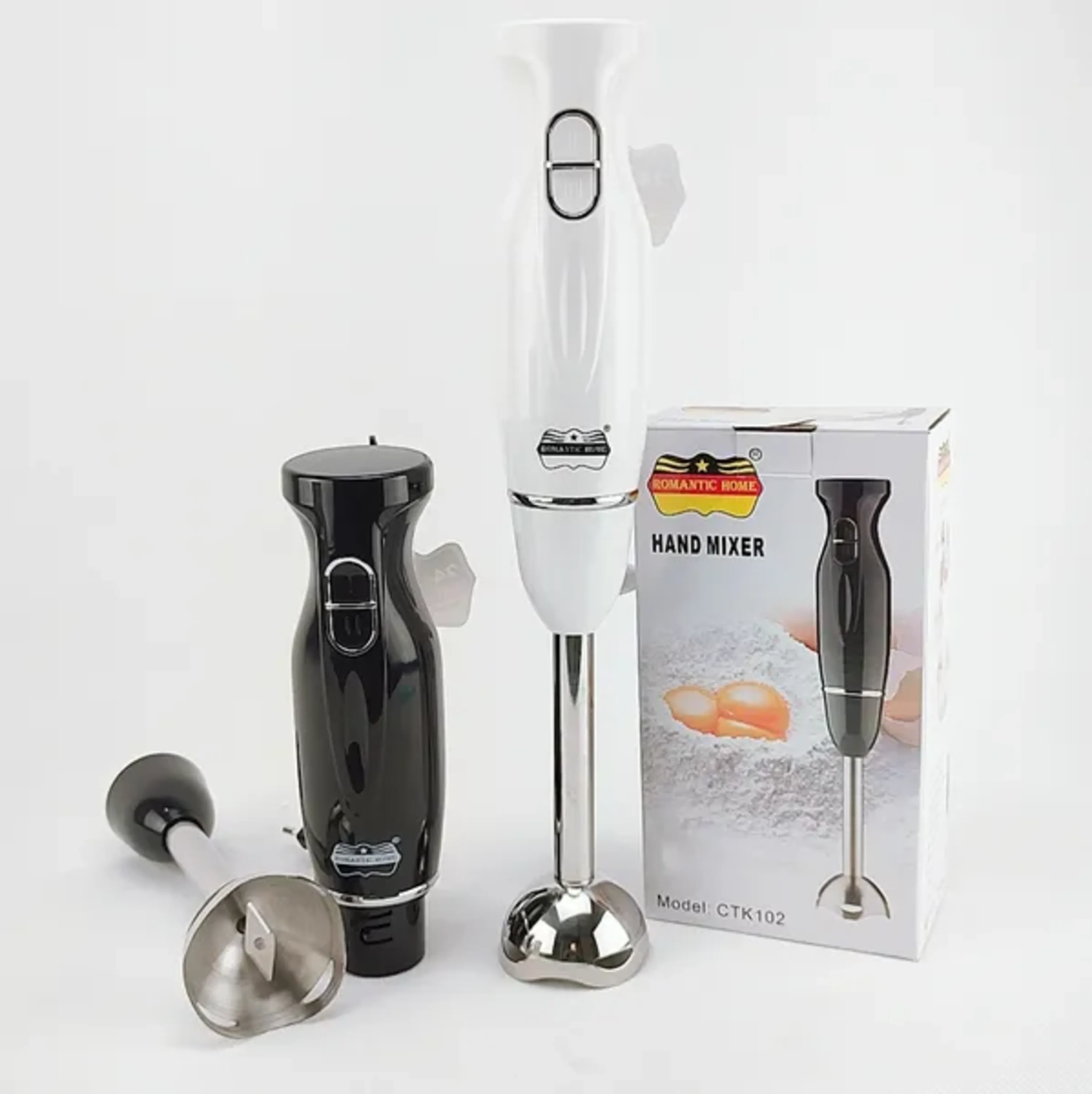 این گوشت کوب رومانتیک هوم مدل CTK102 که بیشتر با نام گوشت کوب شناخته شده است ساخت کشور چین تحت لایسنس آلمان می باشد. این گوشت کوب دارای توان 180 وات می باشد و قابلیت تنظیم سرعت در دوحالت کم و پر سرعت را دارا می باشد و کاربر با توجه به نیاز خود میتواند سرعت دستگاه را کم و زیاد کند. دارای وزن تقریبی 600 گرم و طراحی ارگونومیک بوده که کار کردن با گوشت کوب را آسان می کند و در کوتاه ترین زمان مواد غذایی را برای شما پوره می کند. تیغه های این گوشت کوب از جنس استیل ضد زنگ می باشد که دارای تیغه ای دو پره است. پایه گوشت کوب به راحتی از بدنه قابل جدا شدن می شود و می تواند به راحتی آن را شستوشو داد. مزایای گوشت کوب رومانتیک هومCTK102 وسیله ای کوچک, سبک و کاربردی با استفاده آسان بوده که جابجایی آن نیز بسیار راحت است. این گوشت کوب برقی فضای زیادی را در آشپزخانه اشغال نمی کند. در بسیاری مواقع دیگر نیاز به استفاده از وسایل بزرگ و جانبی در آشپزخانه نخواهید داشت. در کوتاه ترین زمان مواد غذایی را پوره و خرد می کند.