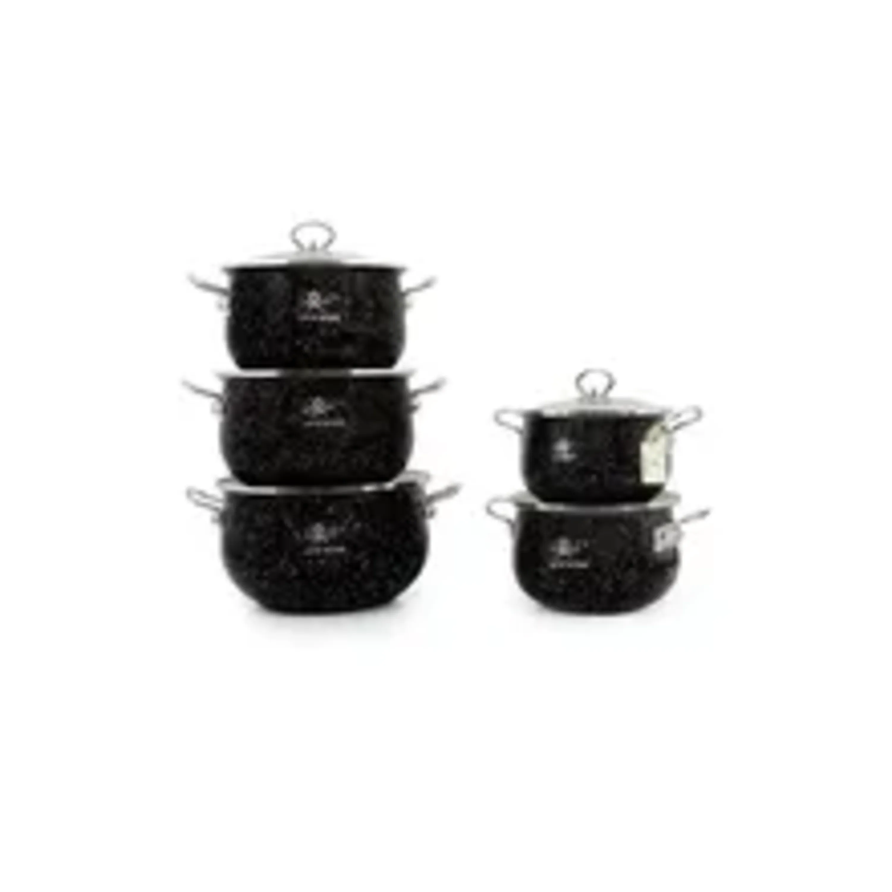 این مجموعه شامل 5 عدد قابلمه به سایزهای 18 تا 24 سانتی متر می باشد.روکش قابلمه ها گرانیت می باشد.درب شیشه ای قابلمه ها مقاوم در برابر ضربه و گرما و سرما می باشد.این قابلمه ها طوری طراحی شده اند که حرارت را به صورت کاملا یکسان در تمامی نقاط خود پخش می کنند.فقط از قاشق یا کفگیر پلاستیکی و یا چوبی برای هم زدن استفاده کنید.پیشنهاد می شود برای شستشو از دست استفاده کنید.