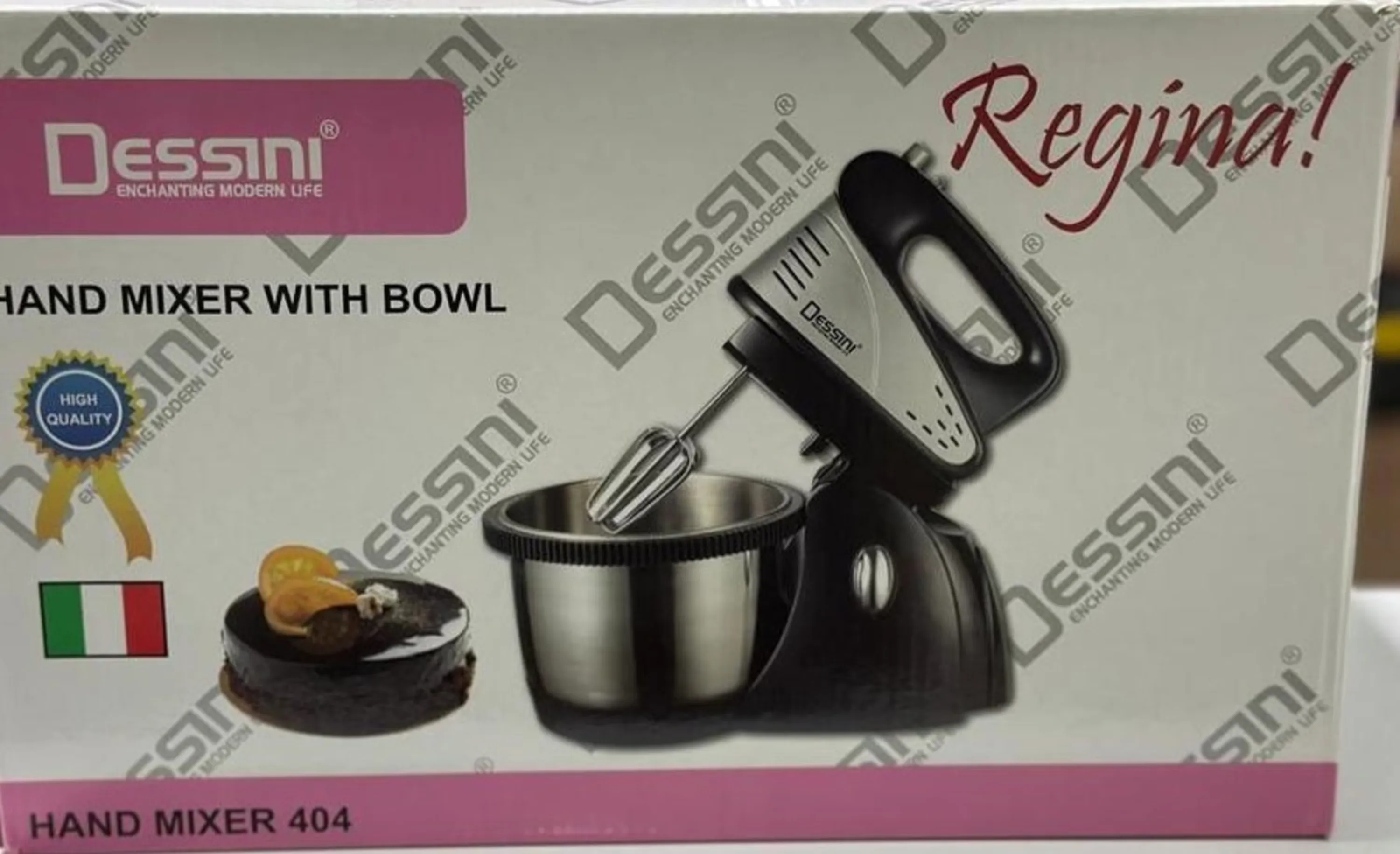 همزن کاسه دار دسینی مدل 404 , خمیر زن و همزن این همزن کاسه دار برای راحت شدن شما از همزدن و خستگیه مچ دستتان در مواردی مانند درست کردن خمیر همزدن مواد کیک کمک میکند , کاسه این همزن 2 لیتری است و شما میتوانید هر چیزی را در آن هم بزنید و جنس این همزن از استیل ضد زنگ هست , موتور این همزن با توان 250وات میتواند سالیان سال برایتان کار کند و خیال شما را بابت همزدن انواع و اقسام مواد های کیک و خمیر و…. راحت کنید این دستگاه بدون کمک دست عمل میکند و شما میتوانید پره ها و کاسه این همزن را شست و شو دهید و نگران هیچ گونه زنگ زدگی در زمینه کاسه آن نشوید