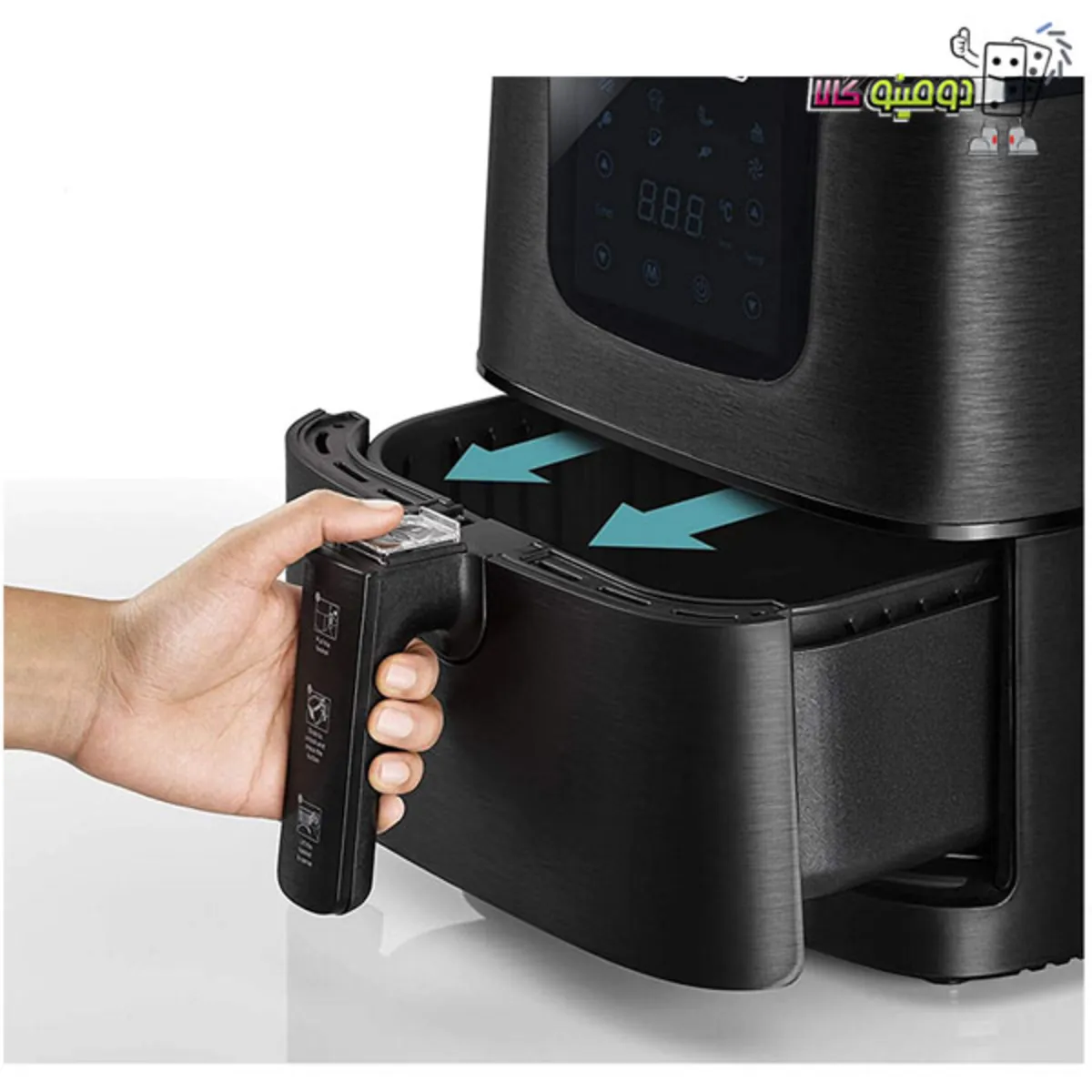 ظرفیت کاسه ی این محصول 4.3 لیتر می باشد و اگر بخواهیم به تعداد بگوییم؛ می توان گفت که ظرفیت این محصول برای 6 نفر مناسب است و در نتیجه می تواند کفاف نیاز های یک خانواده ی 6 نفره را بدهد. جنس بدنه ی این کاسه نیز نچسب است. تعداد برنامه های پخت در این دستگاه 7 عدد می باشد. در نتیجه شما می توانید غذا های متنوع و مختلفی را به وسیله ی این سرخ کن تهیه کنید. سیستم گرمایشی در این محصول نیز به صورت سیستم سریع گردش هوا می باشد.