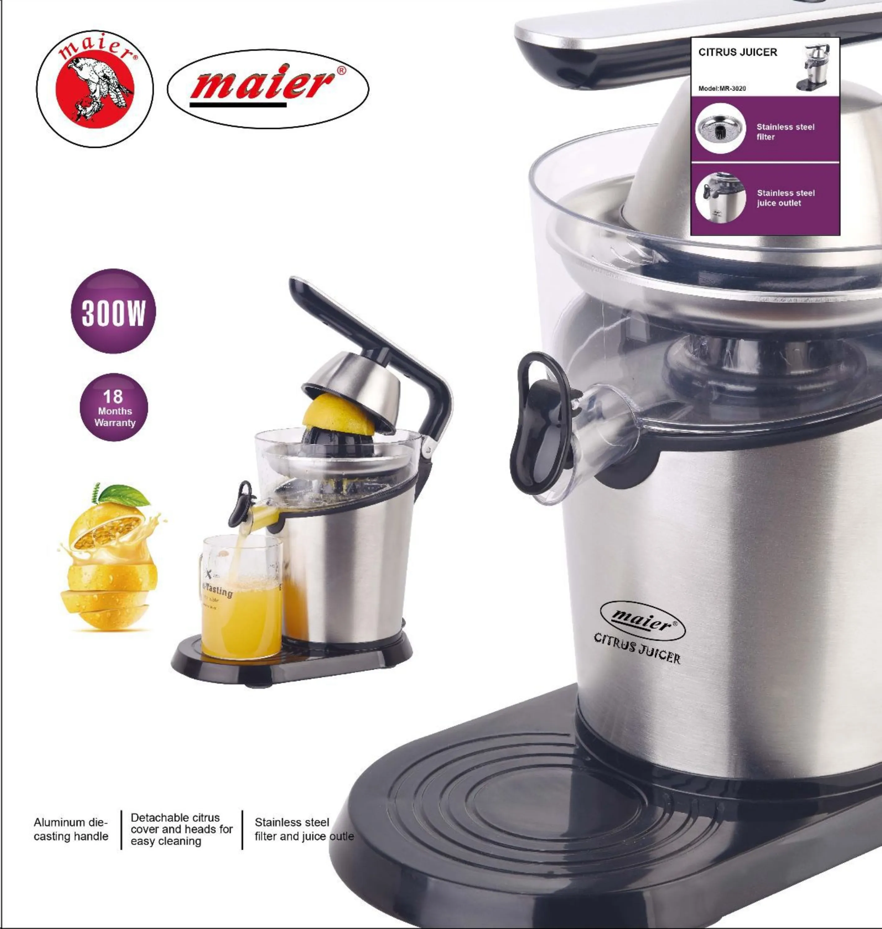 معرفیطراحی کلی آب مرکبات گیر مایر مدل MR-3020آبمیوه گیری آسان برای مرکبات مانند؛ لیمو، لیموترش، پرتقال یا حتی گریپ فروت، آب مرکبات گیر مایر مدل MR-3020 میتواند به راحتی یک فنجان کامل را فقط با فشار دادن دسته برای شما آماده کند. دیگر مجبور نیستید با فشار دادن دست های ناراحتکننده دست و پنجه نرم کنید، اما میتوانید با یک فشار سریعتر و تازه تر از آب میوه لذت ببرید. بدون دانه / پالپ همهی مردم آبمیوه تازه را دوست دارند، اما بلعیدن یک دانه سرگردان یا تکهای از پالپ میتواند جذابیت فنجان را کاهش دهد. به همین دلیل است که این دستگاه برقی، مرکبات شما را با یک صافی یکپارچه طراحی کرده است تا دیگر نگران ریزش دانههای ناخواسته یا پالپ مزاحم نباشید. با هر بار فشار دادن آب خالصتر و تمیزتر به دست آورید. آب مرکبات گیر مایر مدل MR-3020 برای ذخیره سازی ساده در هر کابینت یا هر قسمت میز به راحتی در هر بخشی قرار میگیرد. همچنین میتوانید به راحتی دستگاه را به سرعت جدا کنید.طراحی ظاهری آب مرکبات گیر مایر مدل MR-3020دارای بدنه شیک از جنس استیل ضد زنگ با دسته سیلیکونی است که ظاهری فوق العاده به آن بخشیده است. مانند پرسهای دستی، یک تکه آب مرکبات را به سادگی نصف میکنید. مرکبات را روی مخروط قرار داده و سپس با یک اهرم فشار دهید. این پرس مرکبات برقی هر دو مکانیسم چرخاندن و فشار دادن موجود در دو نوع مختلف گزینه دستی را ترکیب میکند. در یک چشم به هم زدن، نصف مرکبات آب گرفته خواهید داشت. این به قدری سریع اتفاق میافتد که توصیه میکنیم قبل از آب گیری، تمام مرکبات خود را نصف کنید. در کمترین زمان یک لیوان پر آب میل خواهید کرد. آب مرکبات گیر مایر مدل MR-3020 در رنگ پر طرفدار مشکی/ سیلور در فروشگاه ایران کالا 360 آماده سفارش میباشد. جنس فیلتر در این دستگاه از استیل ضد زنگ است که مقاومت سیستم را بالا میبرد و به آسانی نیز شسته میشود.دیگر ویژگیهای آب مرکبات گیر مایر مدل MR-3020هیچ چیز به اندازه یک لیوان آب میوه تازه برای شروع روز شما با طراوت نیست. چه به دنبال تهیه یک لیموناد کلاسیک یا آب پرتقال خوشمزه باشید، این وسیله برای شما مناسب است. آب مرکبات گیر مایر مدل MR-3020 دارای یک موتور DC قدرتمند میباشد که برای تولید انواع مختلف آب میوه کافی است. توان این دستگاه 300 وات است و در زمانی کوتاه میتواند انواع آب مرکبان خوشمزه را برای شما آماده میکند.
