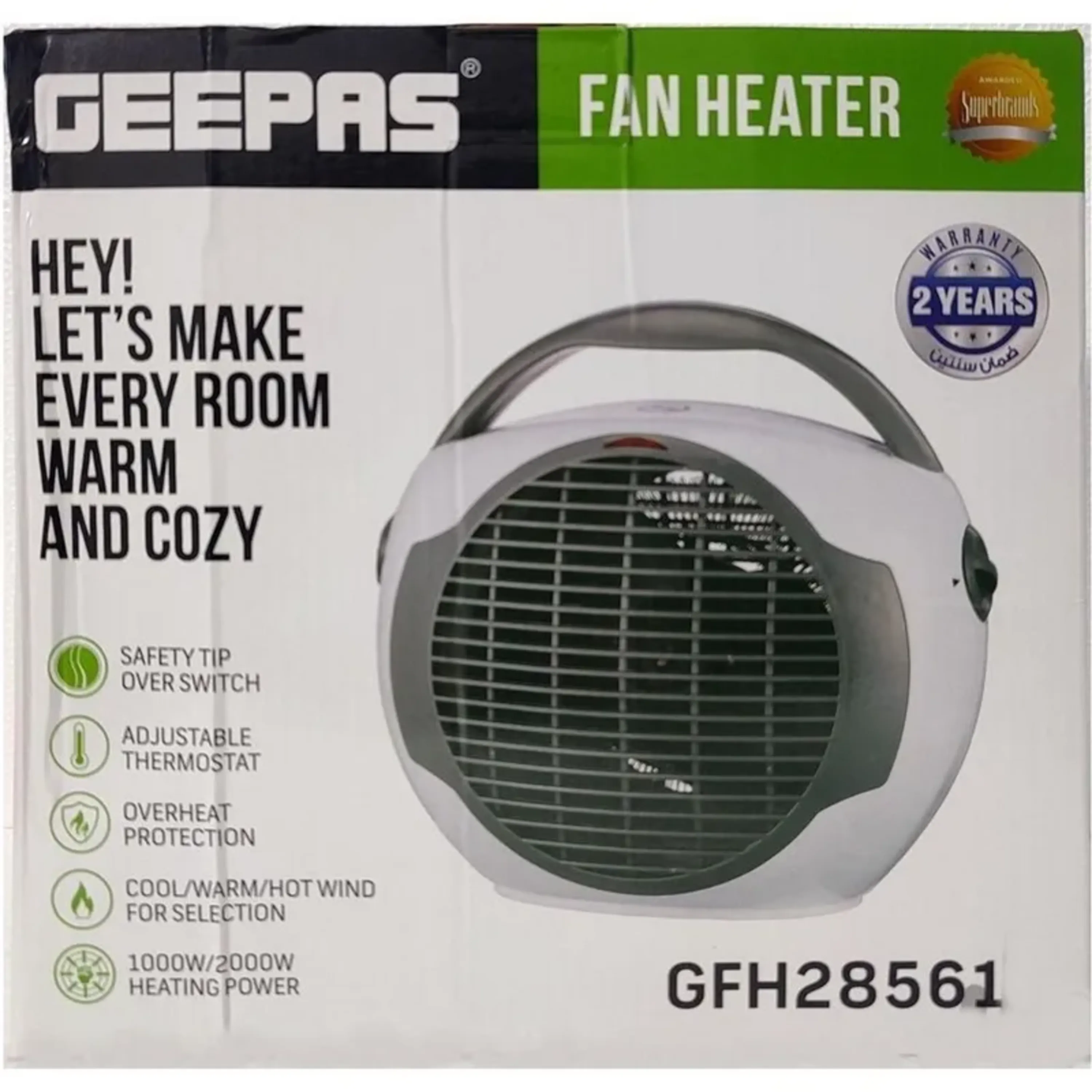 بخاری برقی فن هیتر Geepas- GFH28561| فن با کارایی بالا با 3 حالت، ترموستات قابل تنظیم و گرمایش فوری| محافظت در برابر گرمای بیش از حد، ایده آل برای گرم کردن خانه ها، دفاتر، فضاهای زندگی کوچک و غیره.
