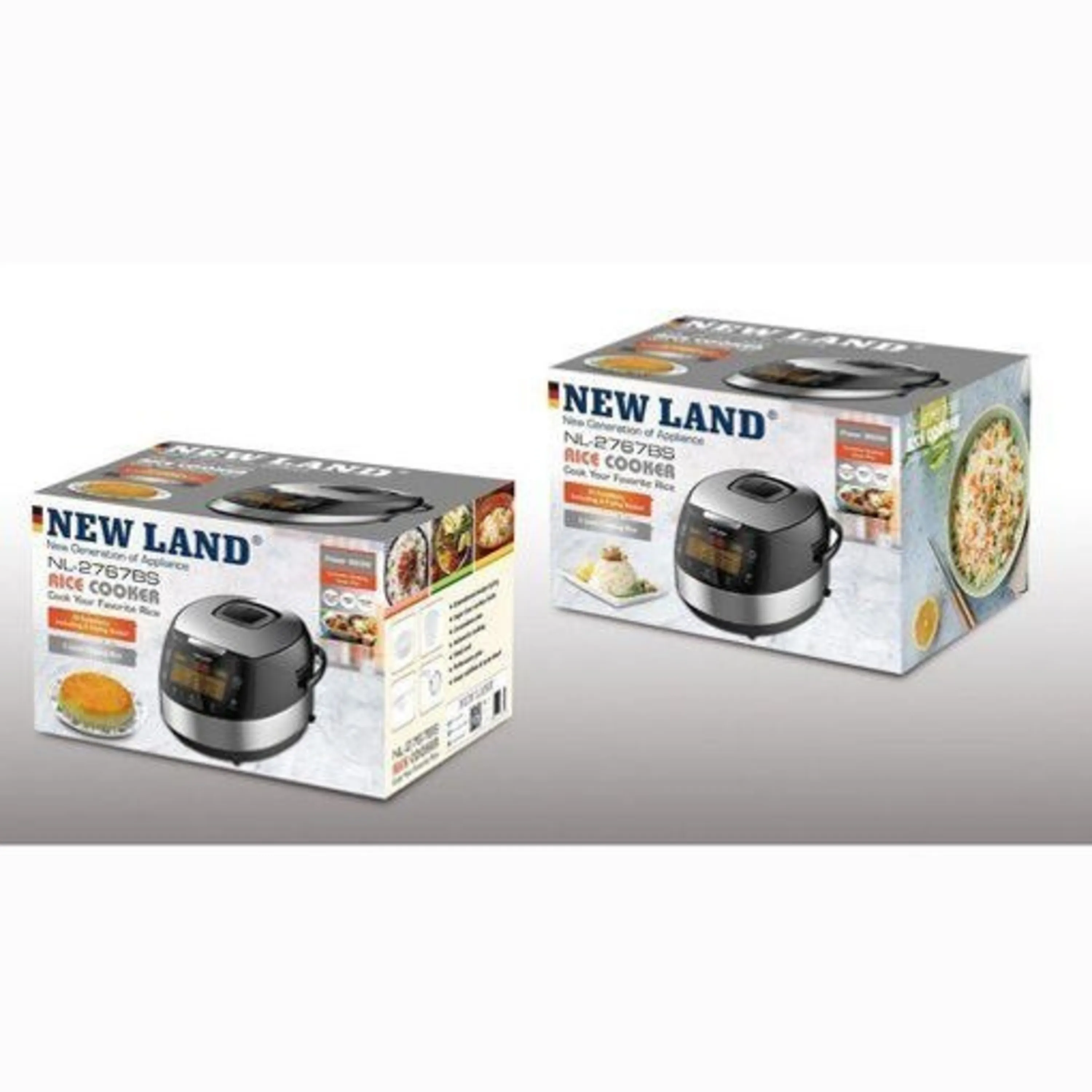 پلوپز کاره نیولند (Rice Cooker) مدل: (NL-BS) توان: وات دارای عملکرد (پخت برنج ساده،زودپز،ته دیگ در سه حالت،ته چین،کینوآ،سرخ کن،سوپ و آش،فرنی و حلیم،آرام پز،بخارپز،کیک،پخت نان و انواع خمیر،ماست،پاستا،پیتزا،اوتمیل،گرم کردن مجدد و ....) دار..