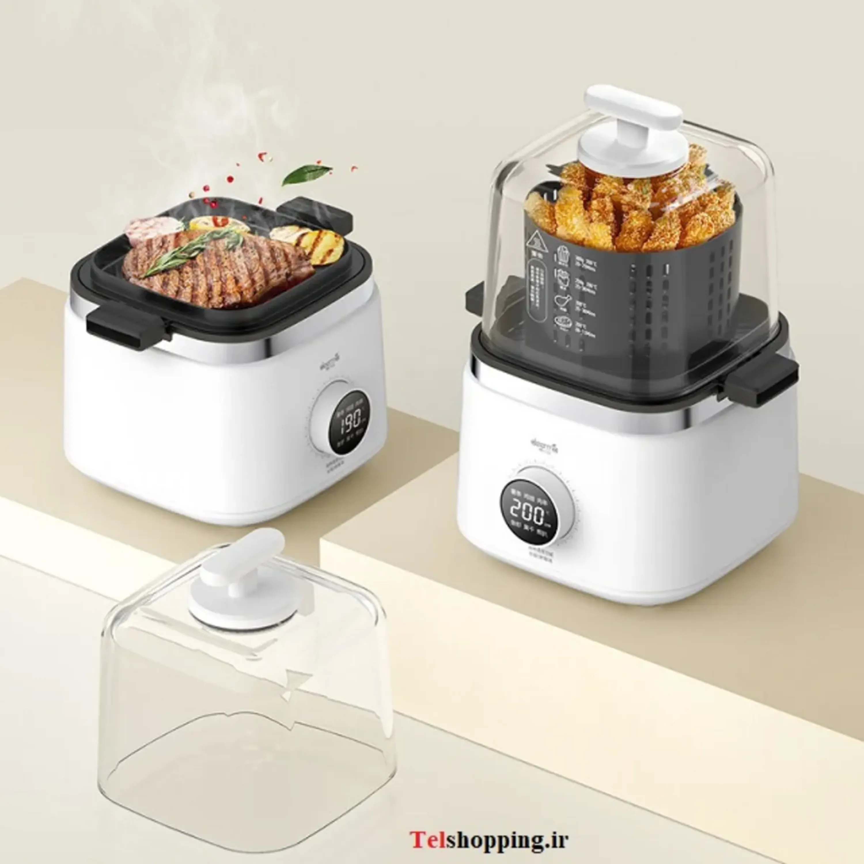 هواپز بدون روغن شیائومی KZ200، ظاهری زیبا و مدرن دارد. بدنه سفید این محصول به آشپزخانه شما جلوه خاصی میدهد و درپوش شیشهای شفاف کریستالی آن هم موقعیت جالبی برای ما ایجاد میکند که هم روند طبخ غذا را ببییم و هم اینکه با سوژه مناسبی برای عکاسی از غذای در حال طبخ برای پست یا استوری اینستاگرام خواهیم داشت. فارغ از این دو از نظر ظاهری این دستگاه یک کلید دایرهای برای تنظیمات دارد که میتوانیم به کمک آن زمان و دمای ذای مورد طبخ و همچنینی دستورالعمل غذایی را کنترل کنیم.