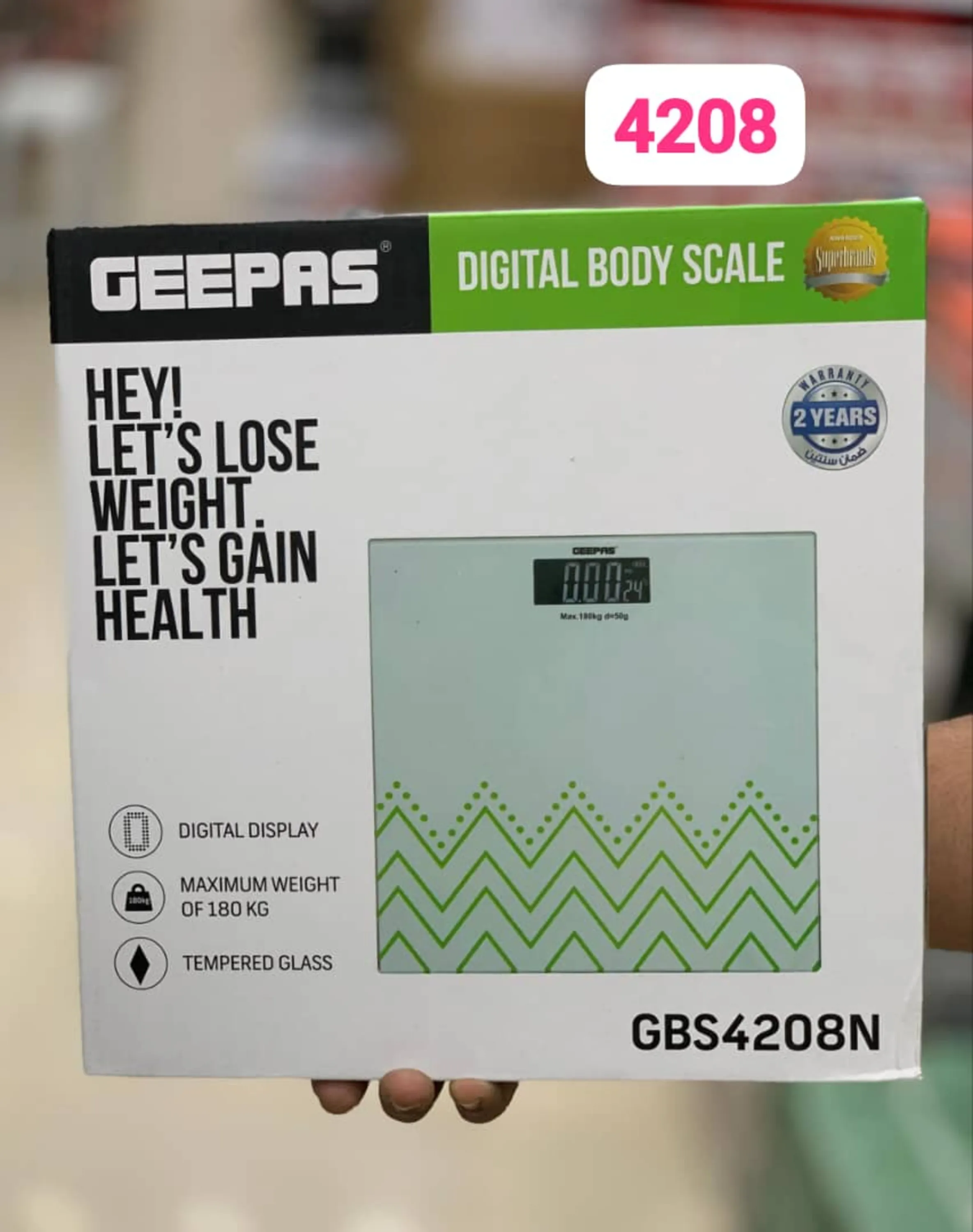 - ترازو دیجیتال جیپاس GBS4208N با حداکثر وزن 180 کیلوگرم و دقت بالا مناسب برای استفاده در منزل است.